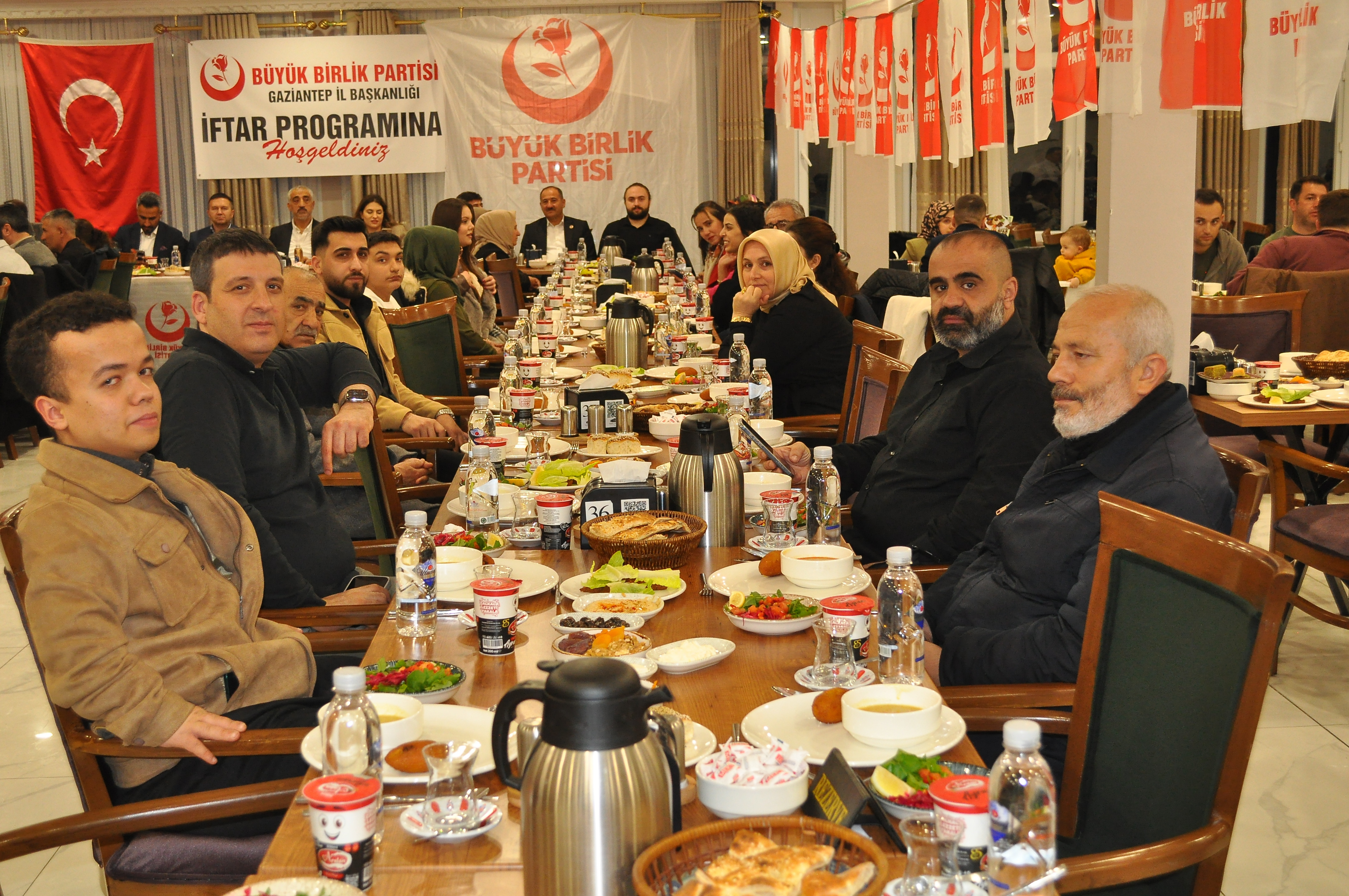 Büyük Birlik Partisi Gaziantep İl Başkanı ve MKYK üyesi Orhan Kızılaslan'ın tertiplediği iftar yemeğine, Parti Yönetim Kurulu üyeleri, Eşleri, Çocukları ve Kadın kolları tam kadro katıldı.
