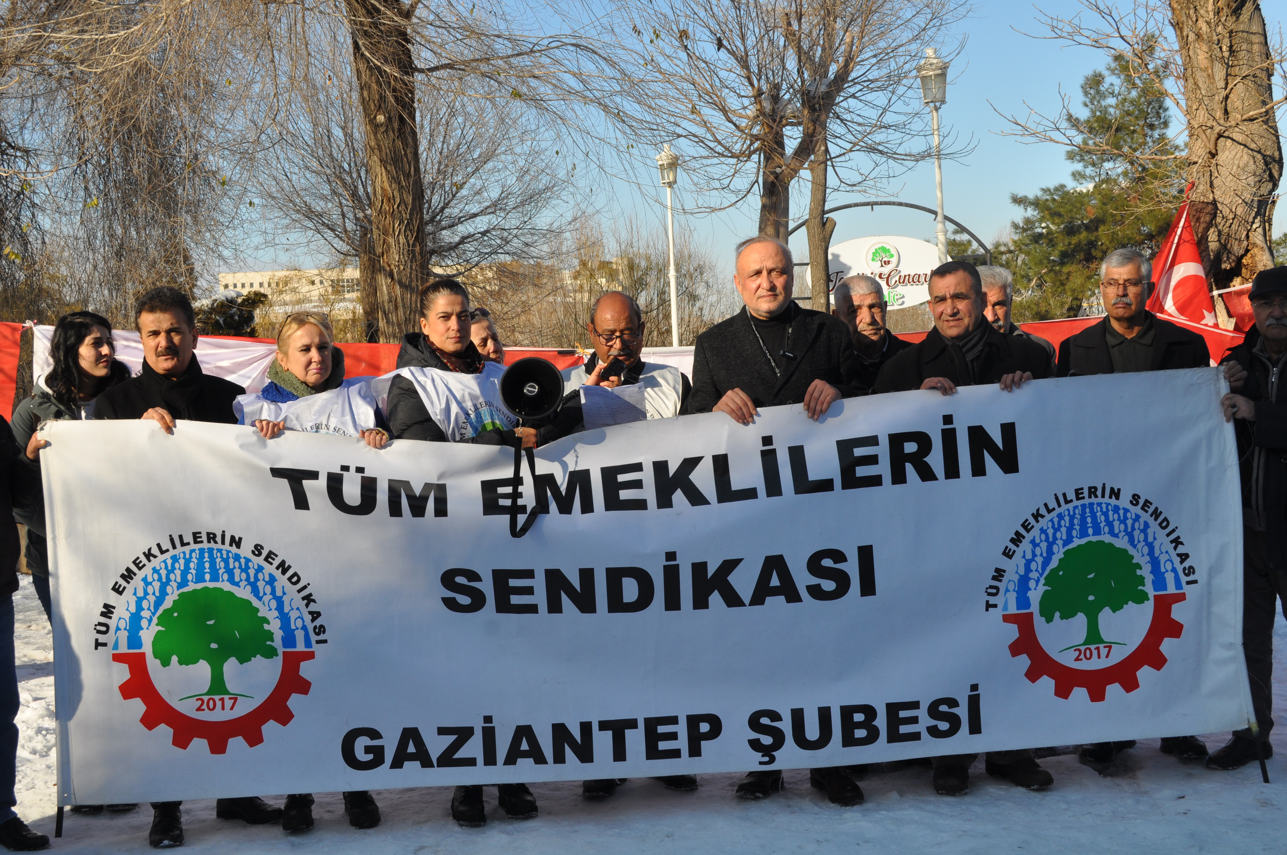 Tüm Emekliler Sendikası Gaziantep Şubesi Yeşilsu Parkında Emekli Zamları için Basın açıklaması düzenledi