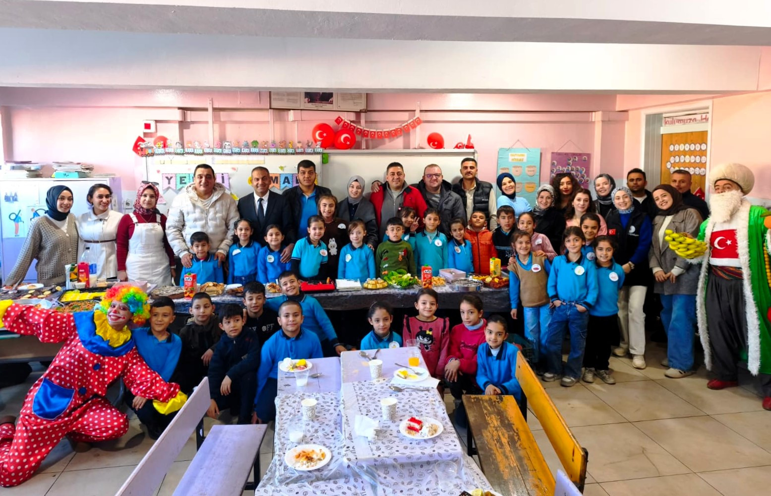 Programda, paylaşma ve dayanışma bilincini pekiştirmeye yönelik olarak hazırlanan yerli malı meyveler ve çeşitli yiyecekler öğrencilere ikram edildi. Ayrıca, kış mevsiminde ihtiyaçlarını karşılamaya katkı sunmak amacıyla mont, ayakkabı ve toplar öğrencilere hediye edildi.