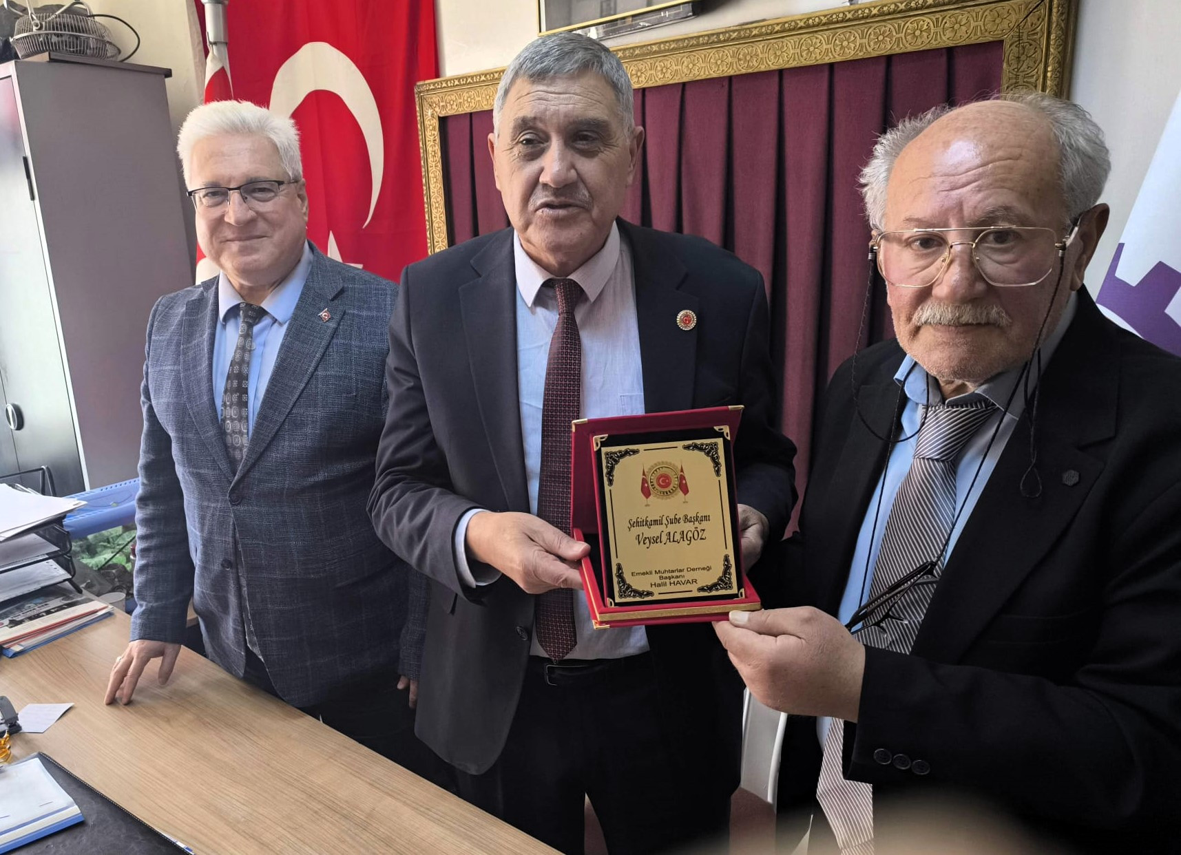 Gaziantep Tüm Emekli muhtarlar Derneği Başkanı Halil Havar ve yönetim kurulu üyeleri tarafından Veysel Alagöz'e başarılarında dolayı bir plaket takdim edildi.
