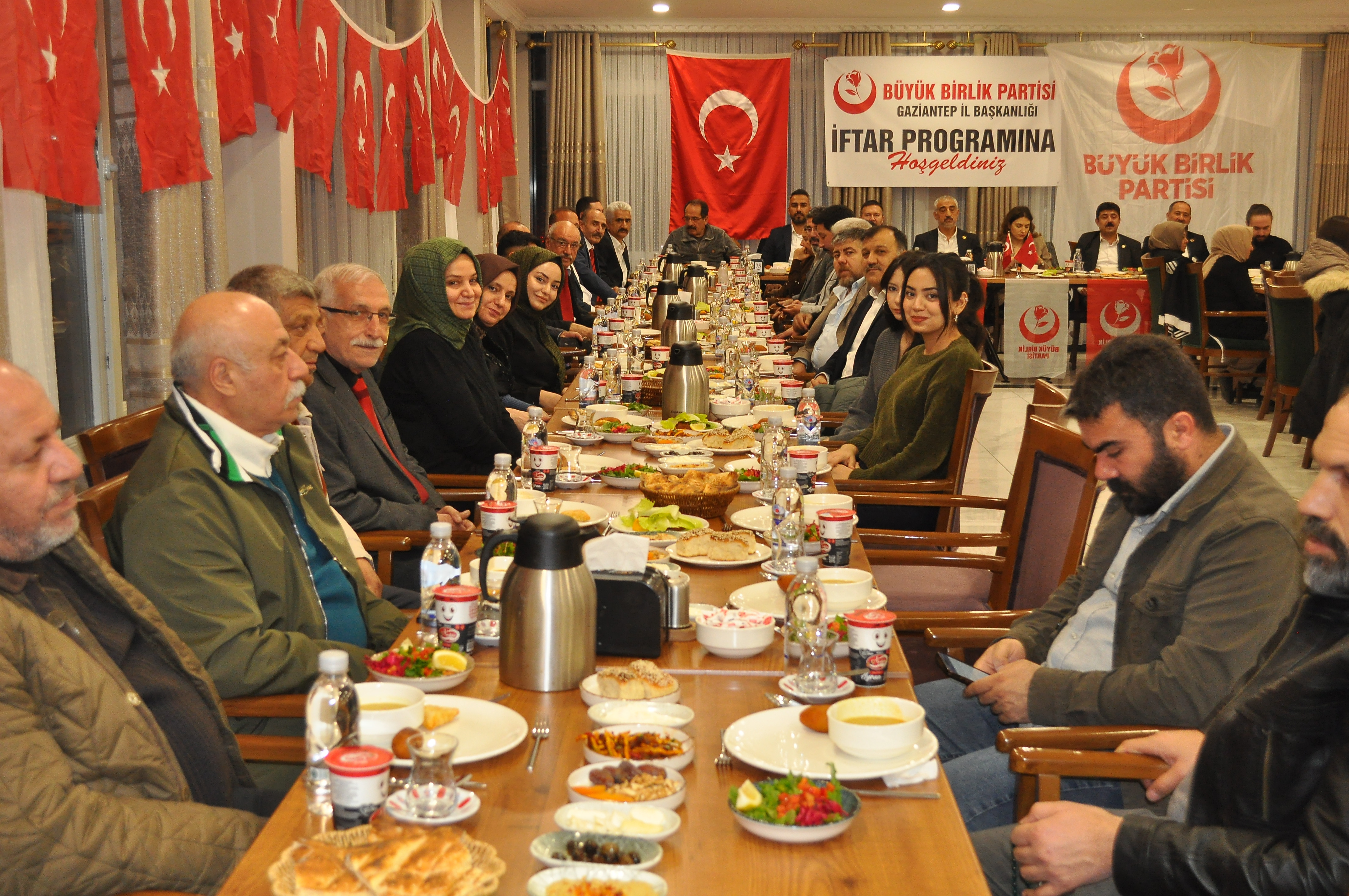 Büyük Birlik Partisi Gaziantep İl Başkanı ve MKYK üyesi Orhan Kızılaslan'ın tertiplediği iftar yemeğine, Parti Yönetim Kurulu üyeleri, Eşleri, Çocukları ve Kadın kolları tam kadro katıldı.