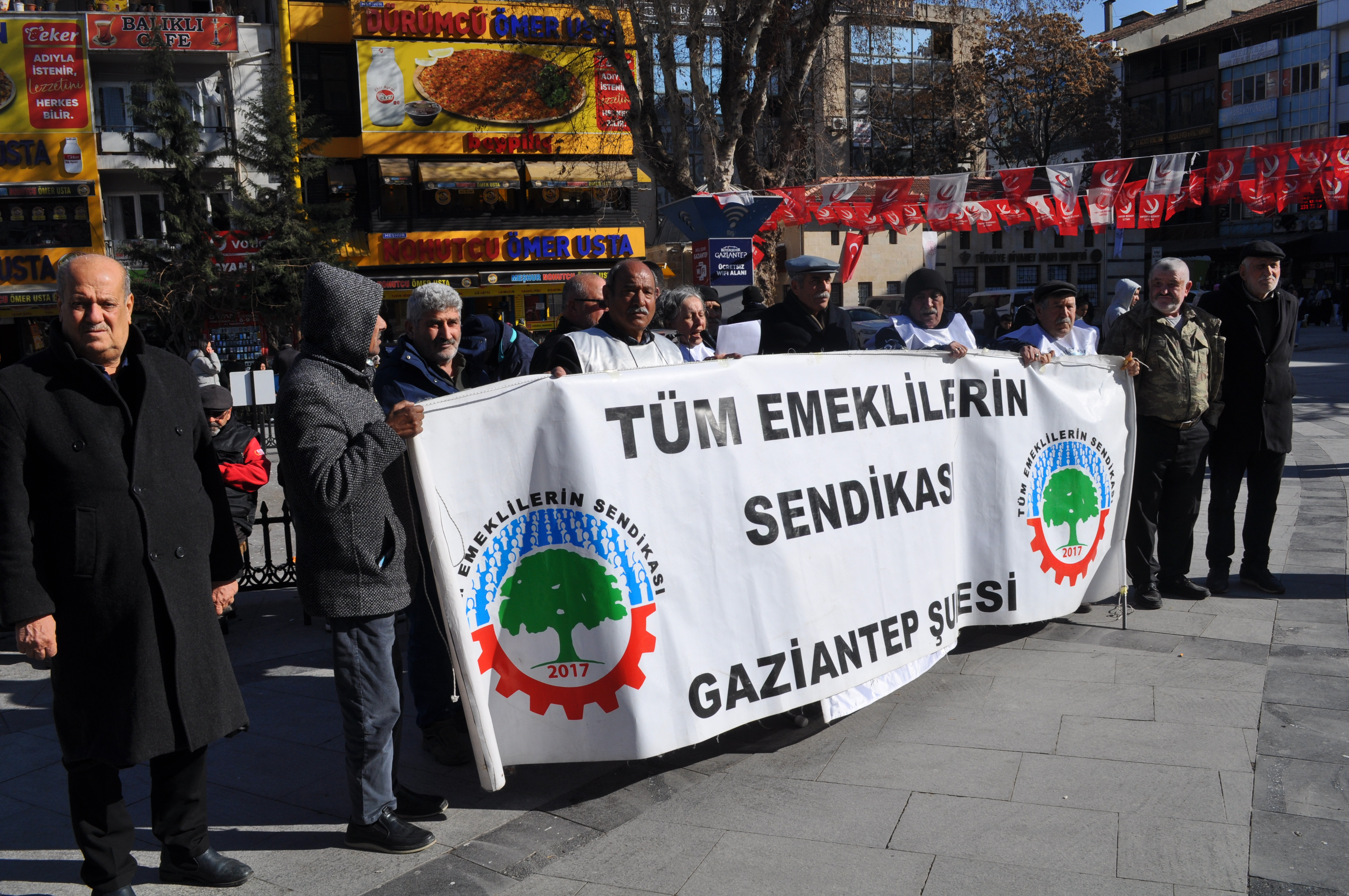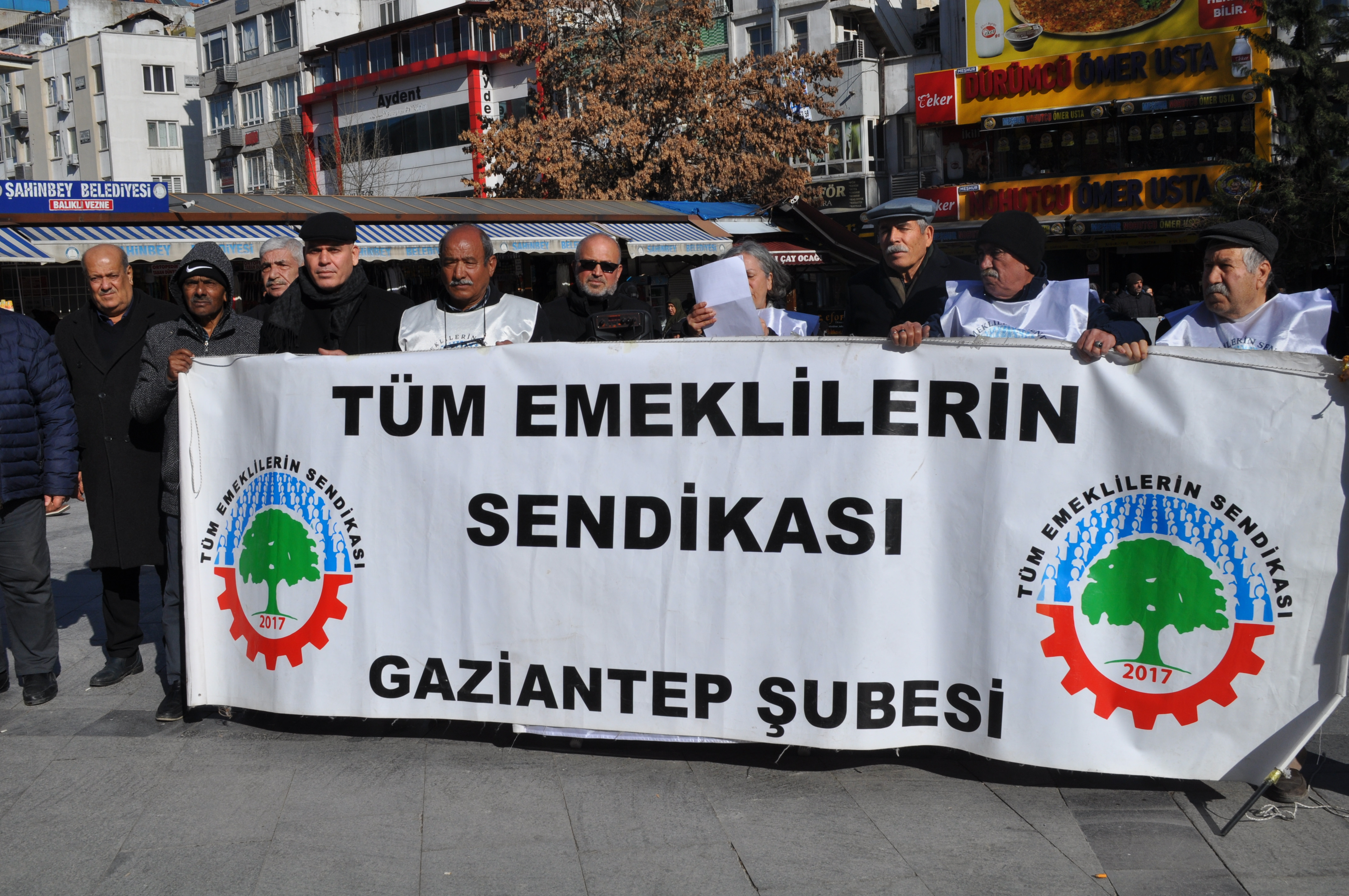 Tüm Emekliler Sendikası Gaziantep şube Sekreteri Besey Gökot Basın Bildirgesini okudu 'Değerli mücadele arkadaşlarımız, emeklilerimiz,